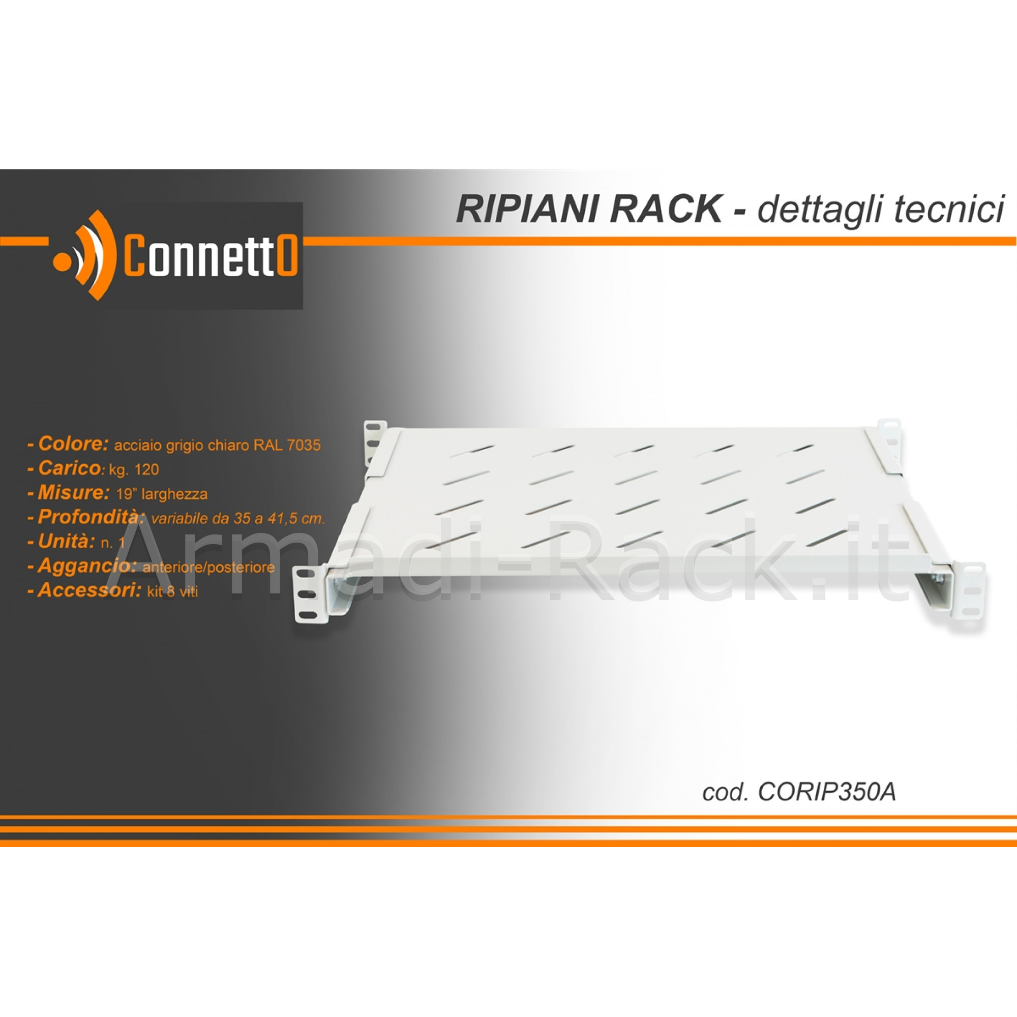 Gli agganci ai montanti sono allungabili, quindi si possono adattare a tutti gli armadi rack con 4 montanti, la cui distanza tra loro sia compresa tra 35 e 41,5 cm (oppure 45 cm con 2 viti di supporto anziché 3).
