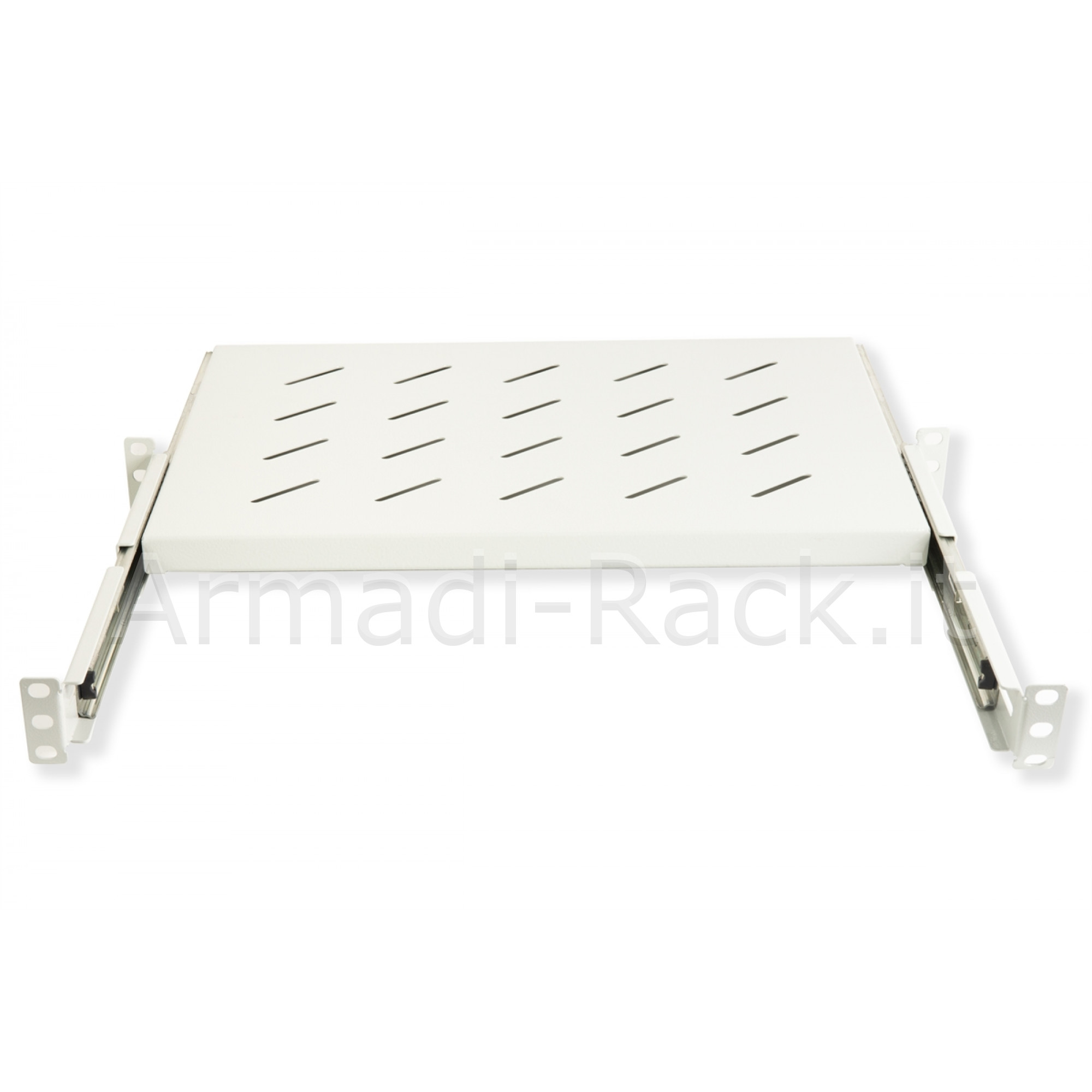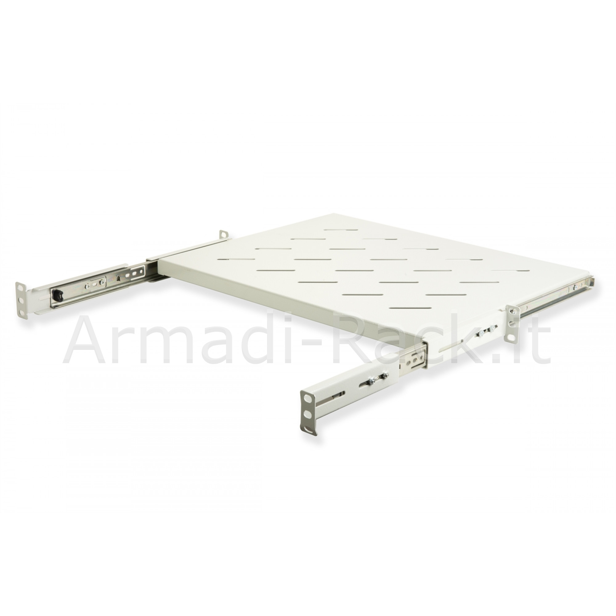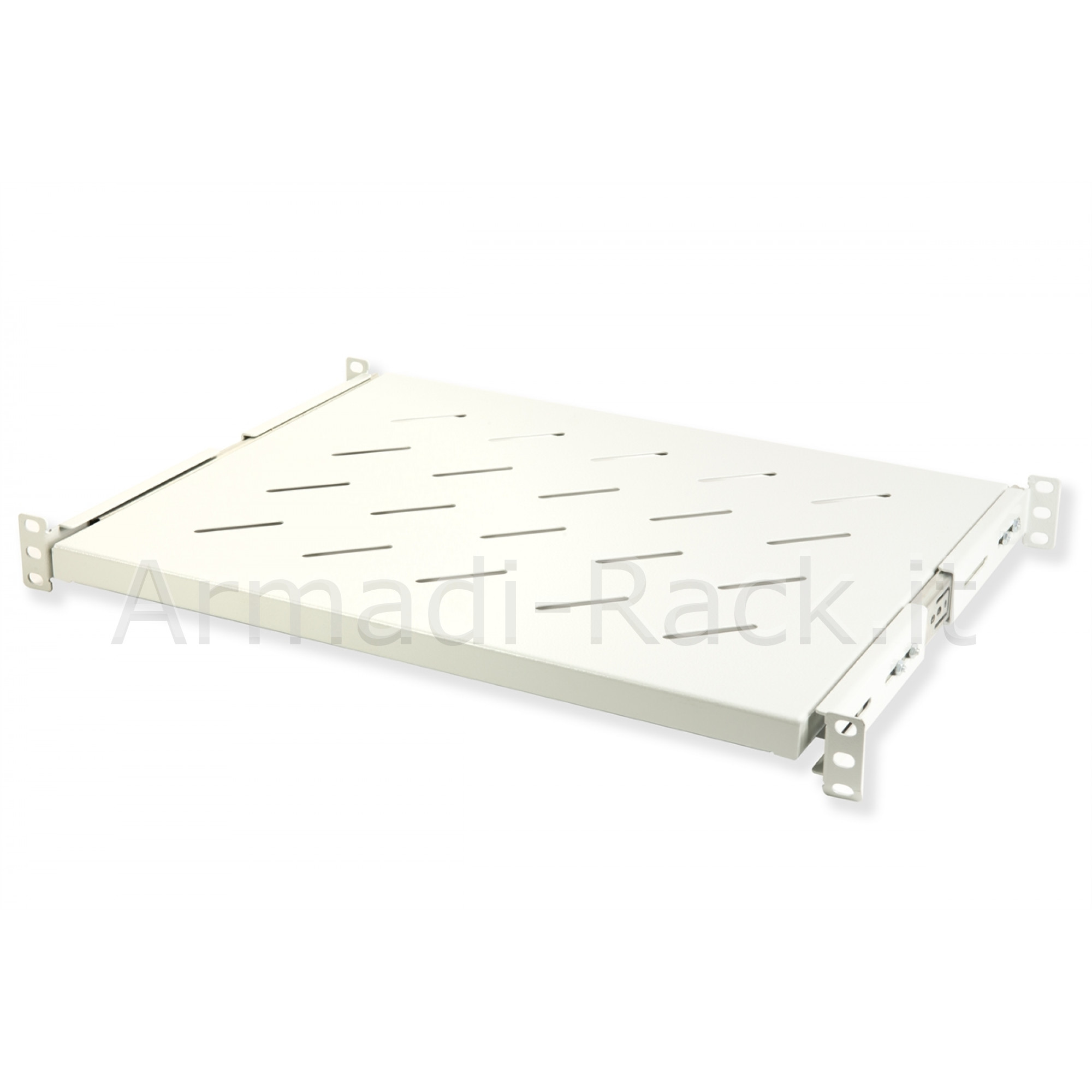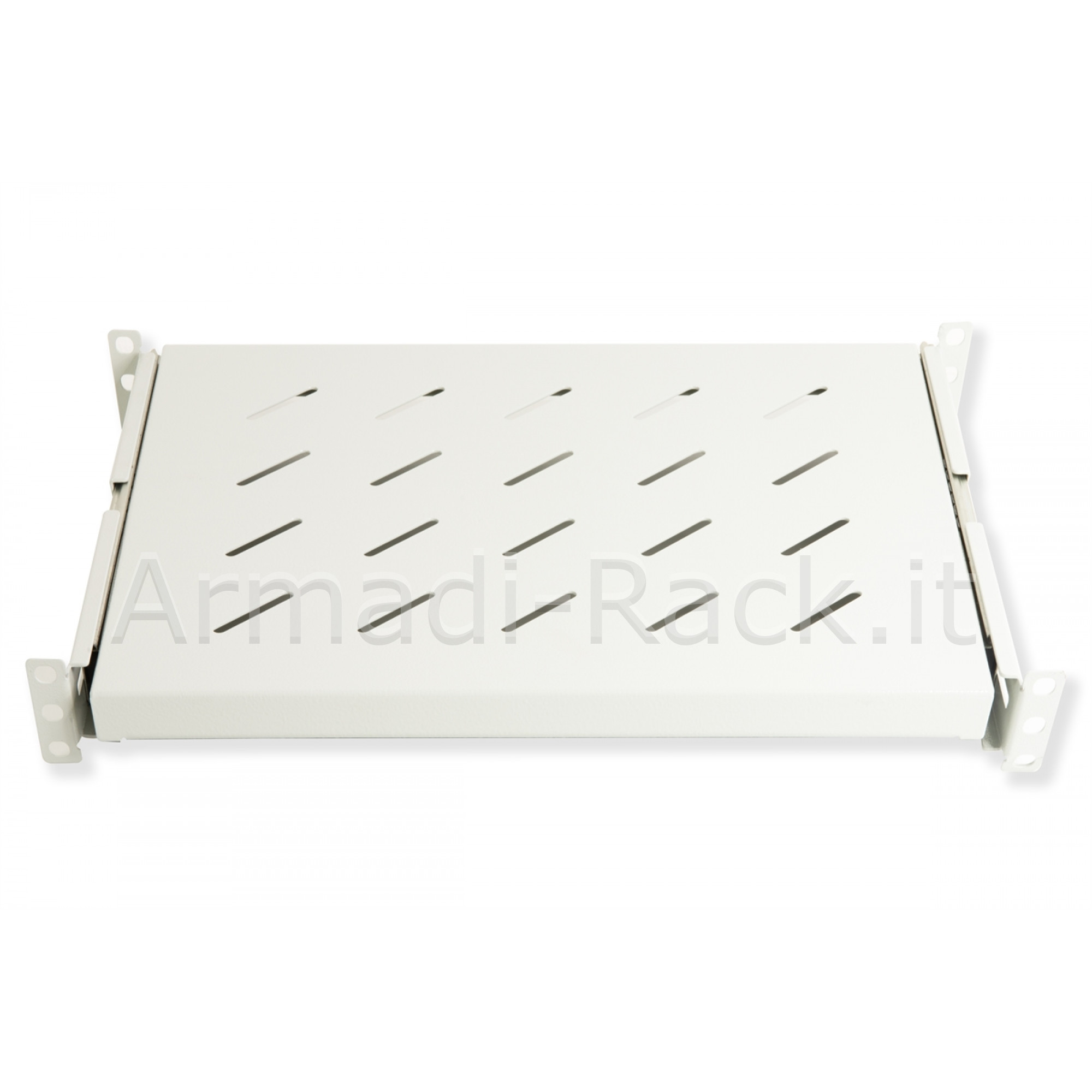 Con rialzo posteriore per bloccare i dispositivi sostenuti e con incavo anteriore per agevolare la presa e l'estrazione del ripiano.