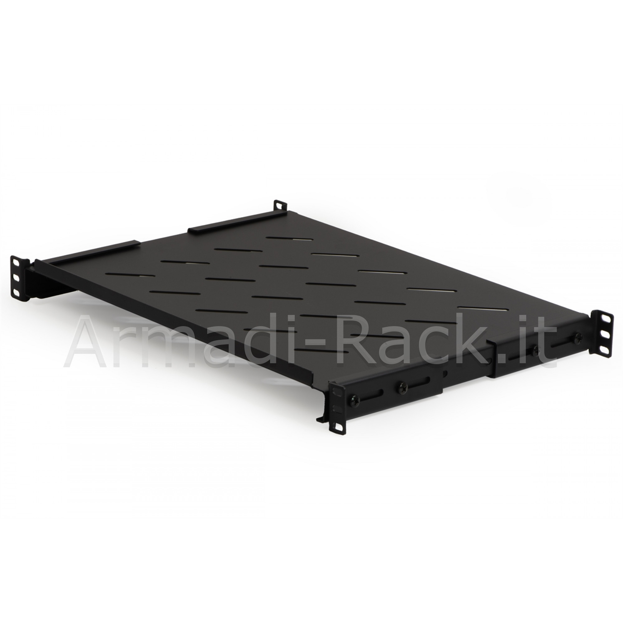 MENSOLE IN ACCIAIO PER RACK 19".Ripiani in acciaio, per sostenere i componenti di rete degli armadi rack. Si agganciano ai montanti anteriori e posteriori di un armadio rack 19". Gli agganci ai montanti sono allungabili, quindi si possono adattare a tutti gli armadi rack con 4 montanti, la cui distanza tra loro sia compresa tra 35 e 41,5 cm (oppure 45 cm con 2 viti di supporto anziché 3).Tipicamente quindi questi ripiani si possono installare su armadi profondi circa 600 mm.Occupano 1 unità.Capacità di carico 120 kg coi supporti retratti.Colore nero RAL9005.Le viti per l'installazione sono incluse.I ripiani sono traforati per agevolare il passaggio dell'aria e diminuire il surriscaldamento all'interno dell'armadio.