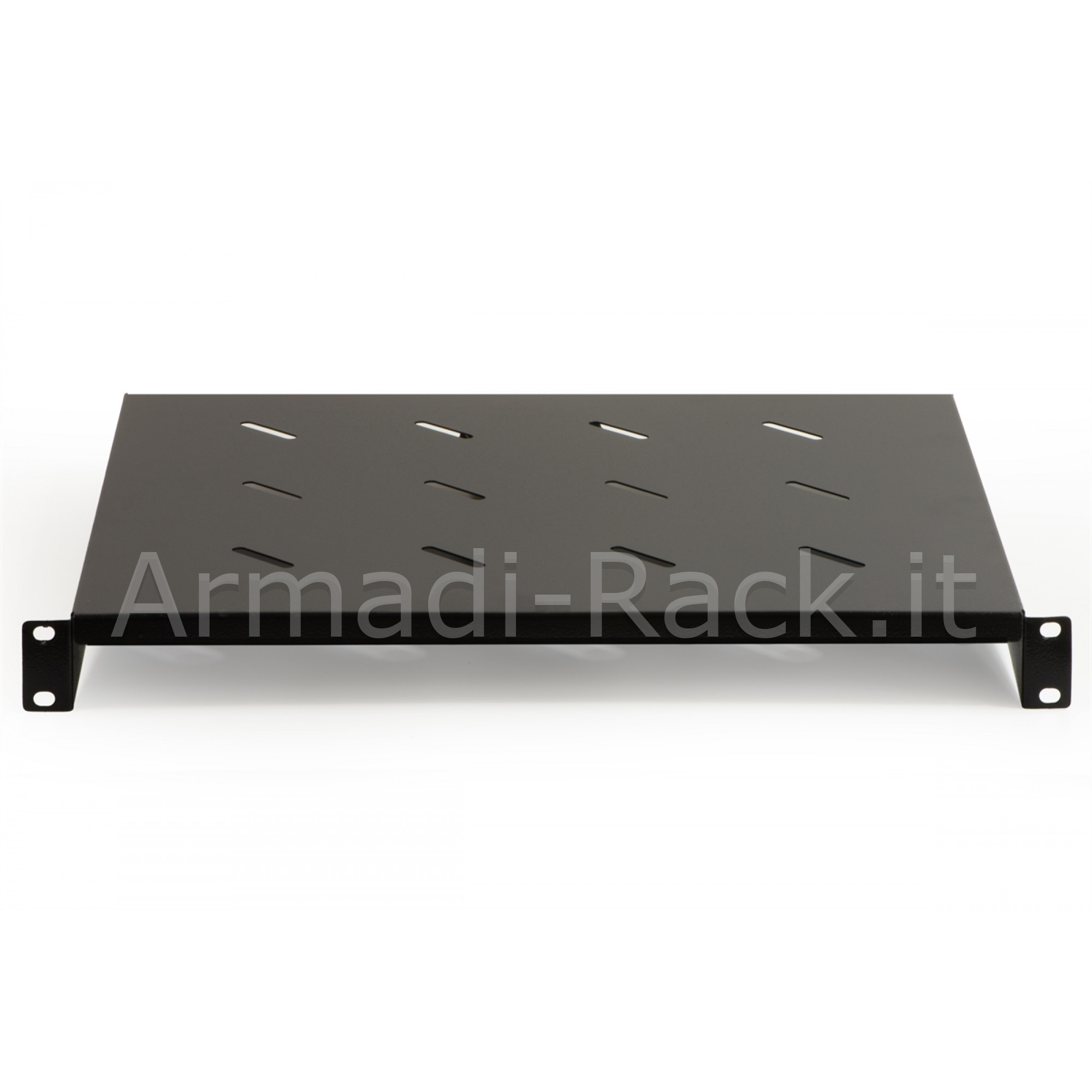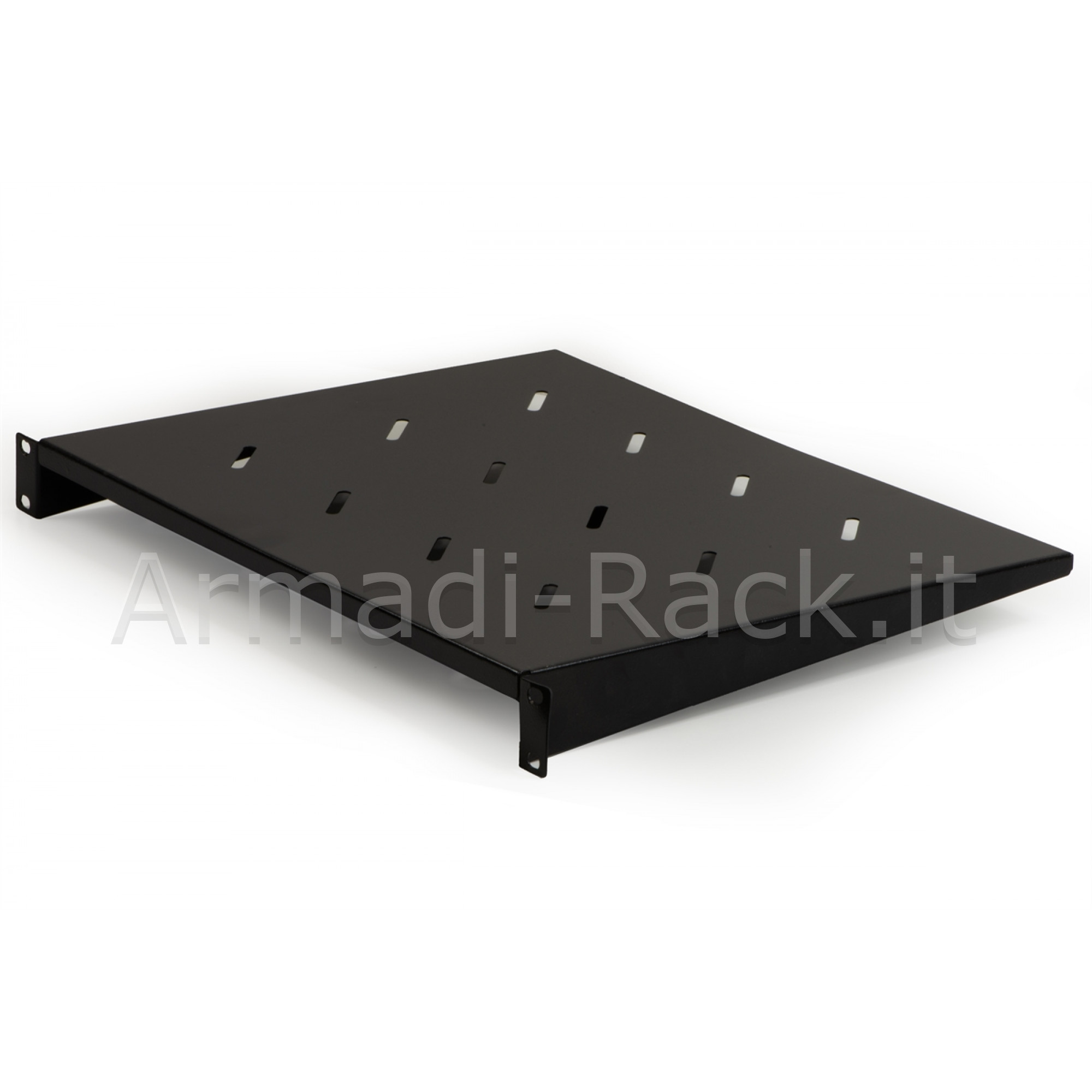 MENSOLE PER RACK.Ripiani in acciaio, per sostenere i componenti di rete degli armadi rack. La mensola si aggancia alla parte frontale dell'armadio. In acciaio, con attacchi frontali, universali per tutti gli armadi 19" dove la profondità lo consente.Capacità di carico 20 kg, colore nero RAL9005.Sono incluse anche le viti per l'installazione.