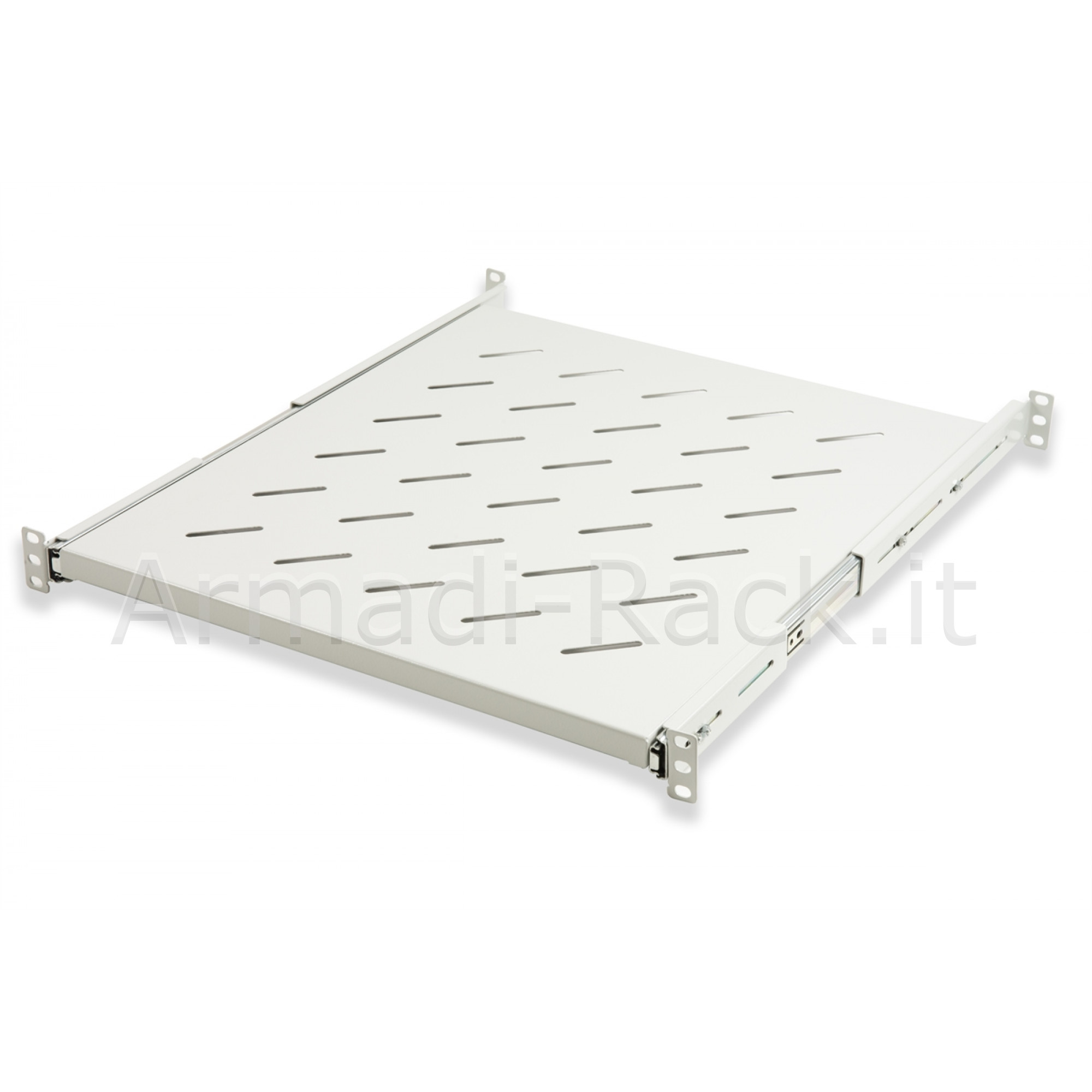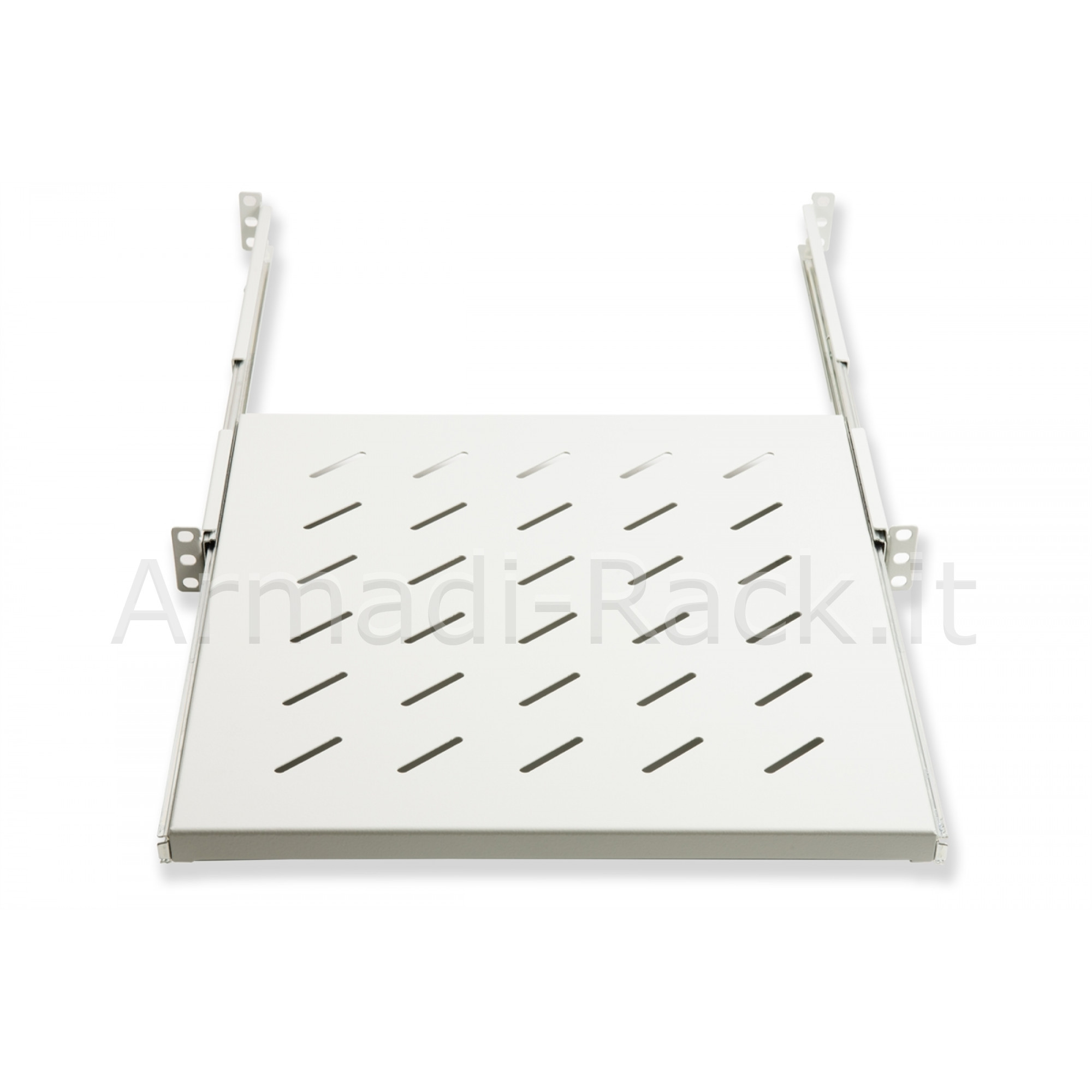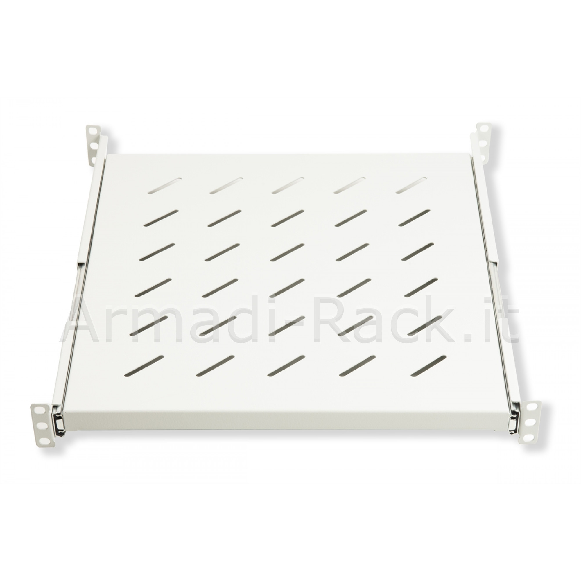 Con rialzo posteriore per bloccare i dispositivi sostenuti e con incavo anteriore per agevolare la presa e l'estrazione del ripiano.