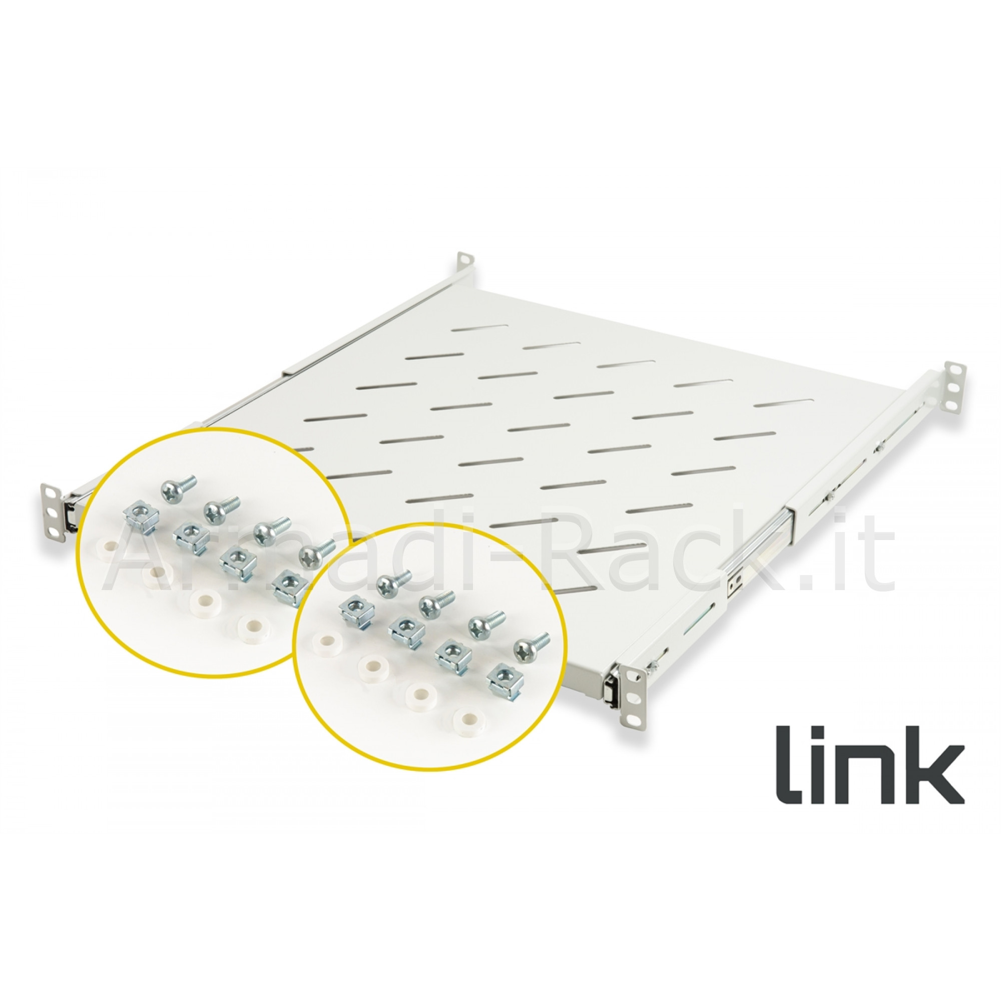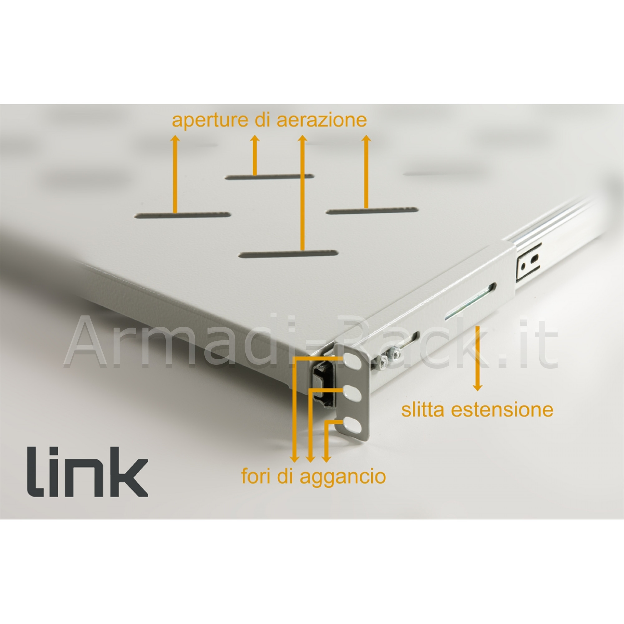 Di costruzione solida, con 4 agganci, si attaccano ai montanti laterali anteriori e posteriori nell'armadio rack 19".