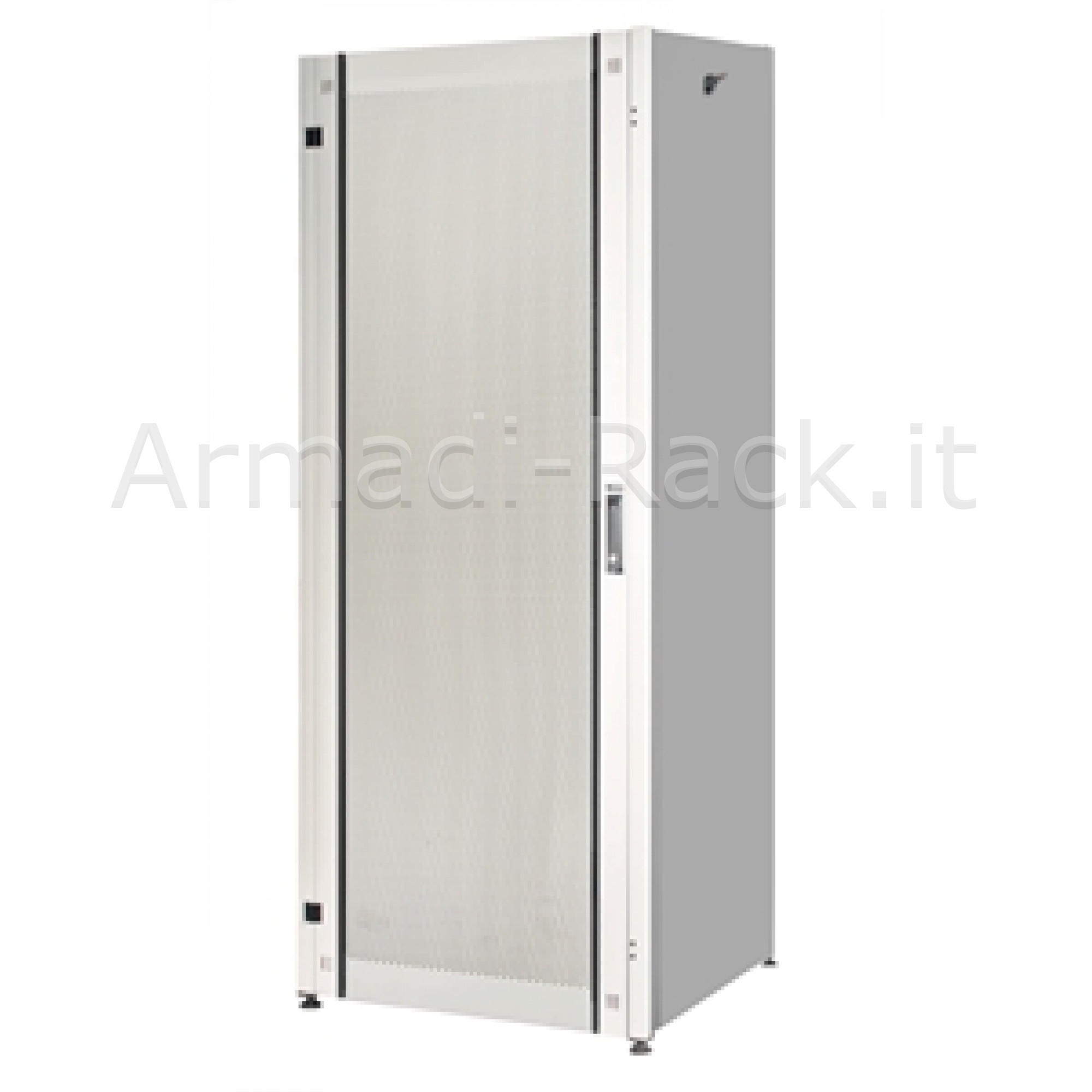 Armadi rack per reti, specifici per alloggiare componenti attivi e passivi per reti 19''Per semplificare la gestione dei cavi e garantire adeguata aerazione, anche in caso di alta densità dei componenti interni tipici delle installazioni attualiHanno prestazioni di carico testate per un carico nominale di 1000 kgPossono trasportare apparecchiature per telecomunicazioni pesanti, UPS e batterie inoltre apparecchiature di rete standard come switch, patch pannelli e cavi.Porta frontale traforata in acciaio con serratura con maniglia girevole a chiave, apertura 180°La porta frontale è reversibile, in modo da poter avere l'apertura a destra o a sinistra a seconda delle esigenzeQuesta tipologia di armadi ha un'elevata resistenza alla corrosione grazie al pretrattamento nanotecnologico, Bonderite/Henkel prodotti chimici e polvere epossidica spessa 80-120 micron rivestimento per oltre 500 ore di test in nebbia salinaSezioni laterali e porta posteriore in metallo chiuso, removibili con chiusura a chiave4 Montanti in acciaio zincato da 19'' anteriori e posteriori regolabili in profonditàIn ogni montante l'unità è numerata, per semplificare il montaggio dei componentiPossibilità di ingresso dei cavi dall'alto dell'armadio o dal basamentoEventualmente il basamento è removibile per consentire l’ingresso di grandi quantità di caviTetto predisposto per unità di ventilazioneAmpia gamma di accessori disponibiliCon piedini di livellamento e ruote opzionaliColore: grigio RAL7035 Standard principali:EN 12150-1 compliant tempered, anti-static, secure, grinded edges glass front door-t: 4,0 mm or %63 perforated doors for ventilation requirementsDIN 1743, DIN 53571, RoHS compliant ergo handle and/or barrel quarter turn locksEN IEC 60297 - mechanical structures for electrical and electronic equipment.Dimensions of mechanical structures of the 482,6 mm (19 in) seriesEN IEC 60917 modular order for the development of mechanical structures for electronic equipment practicesEIA/ ECA-310 (D/E) 19’’ 482,6 mm and U 44,45 mm Height SizingRoHS compliancy according to 2011/65/EUCE compliant to EN 60950-1