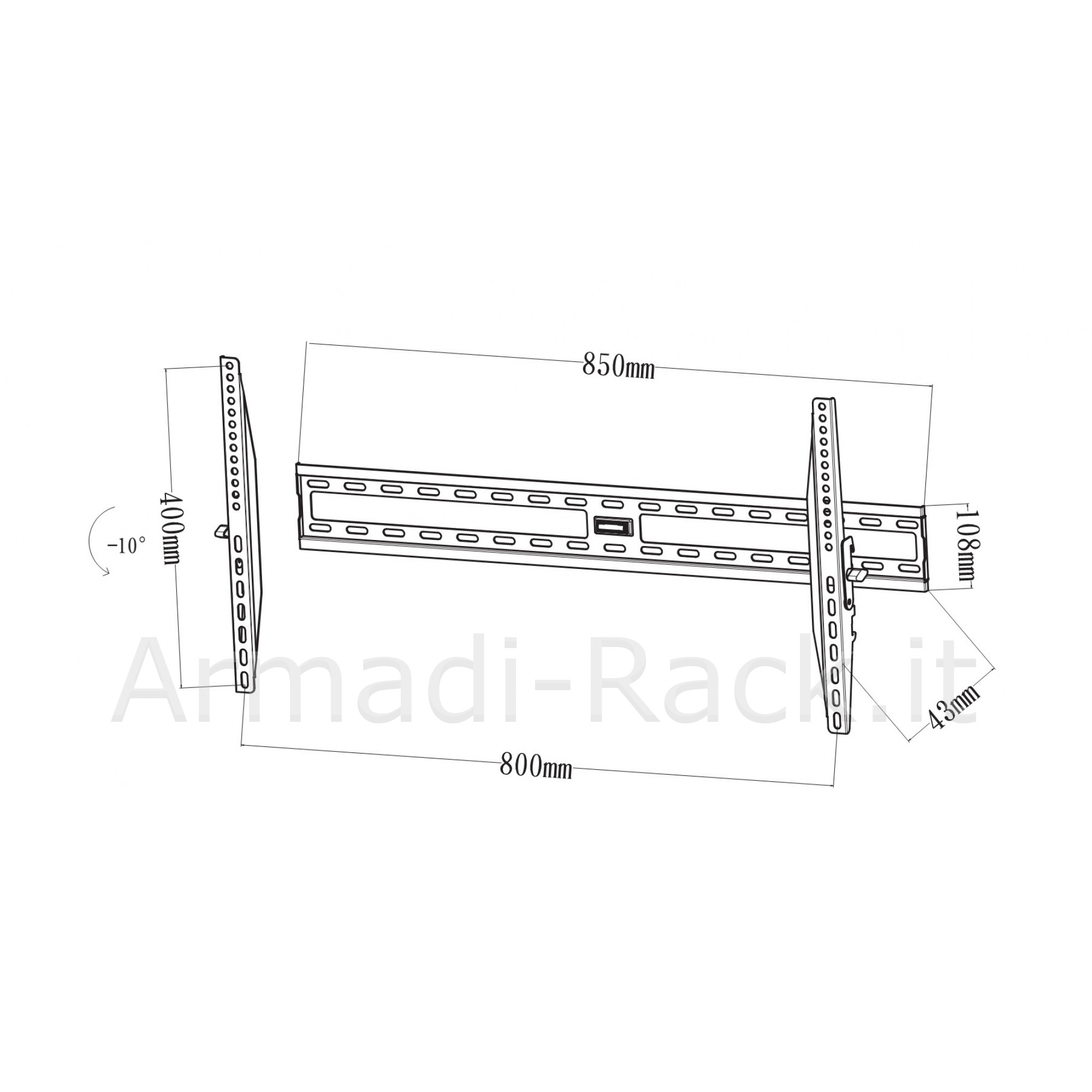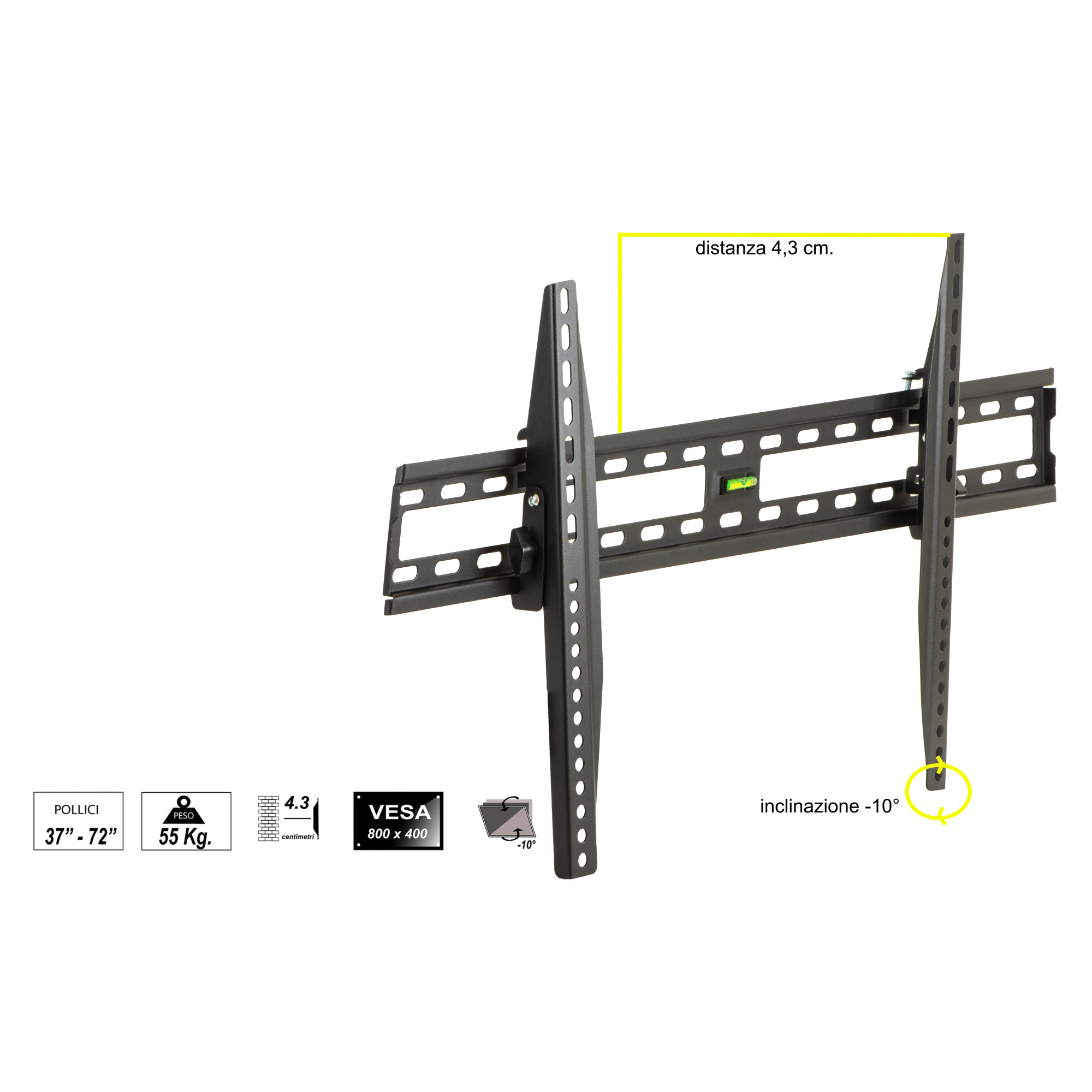 Profilo molto basso, 4,3 cm, sporge pochissimo dal muro pur mantenendo la corretta aerazione nella parte posteriore della TV.