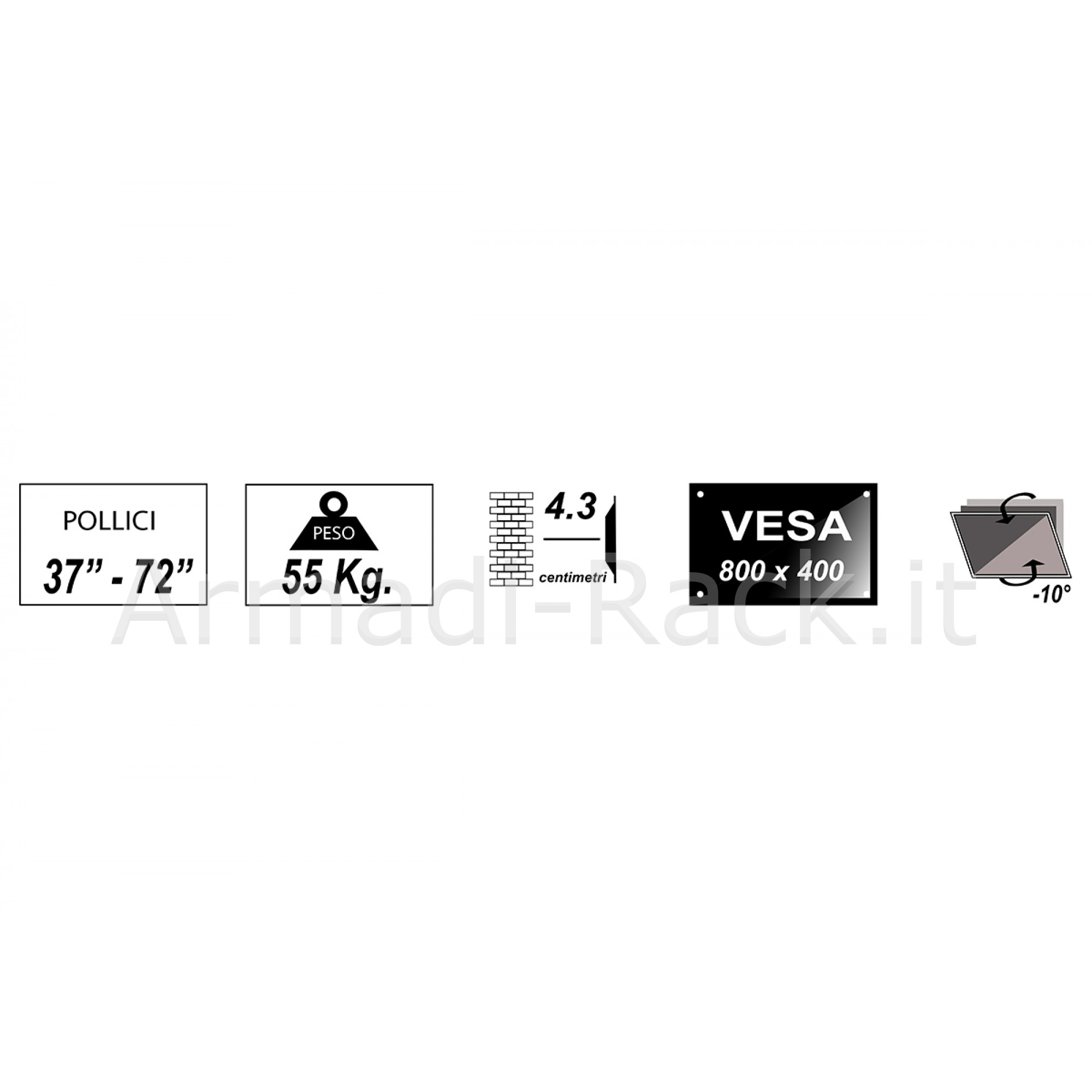 Staffa per installare a parete monitor e TV LED o LCD da 37" a 72", con possibilità di regolare l'angolo di visione verticale.