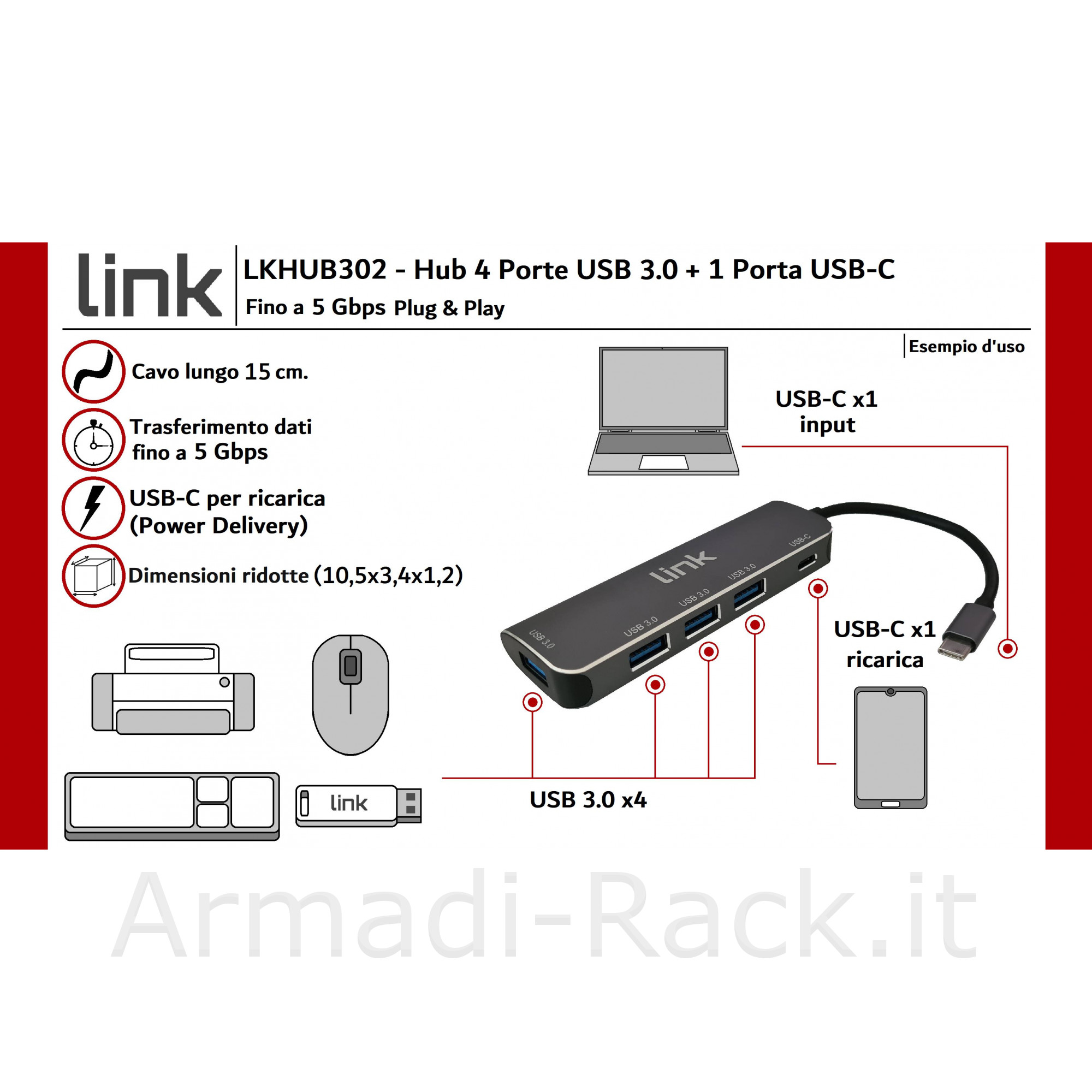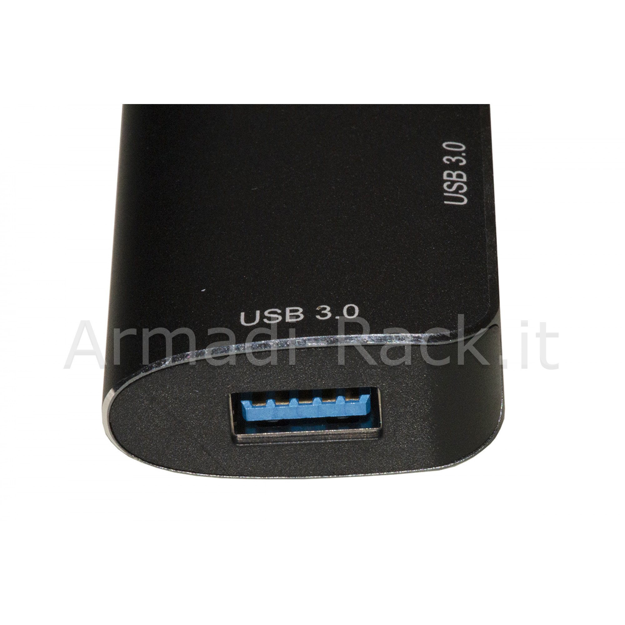 Questo Hub permette di aggiungere 4 porte USB 3.0 a un dispositivo come uno smartphone, tablet, notebook con porta USB-C.