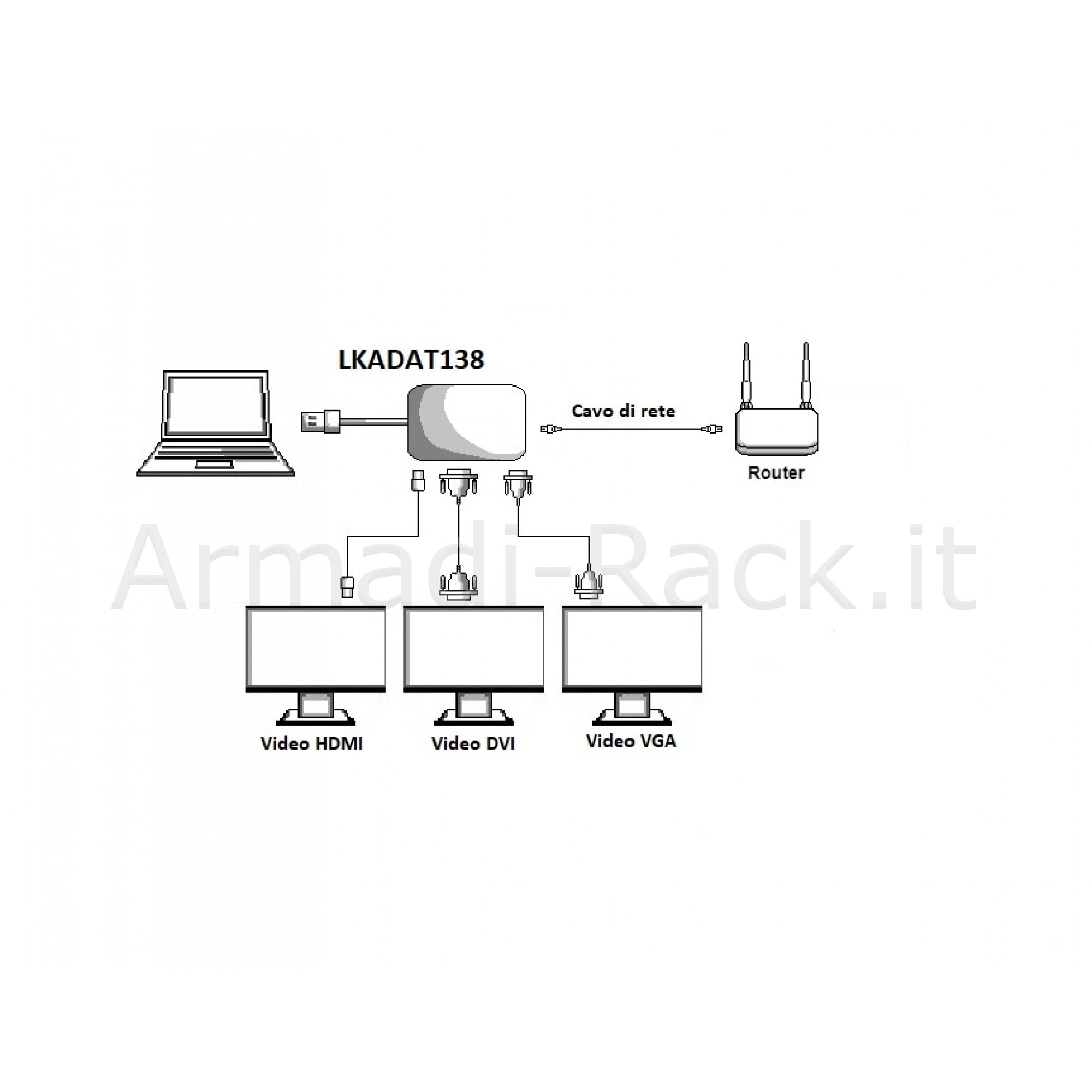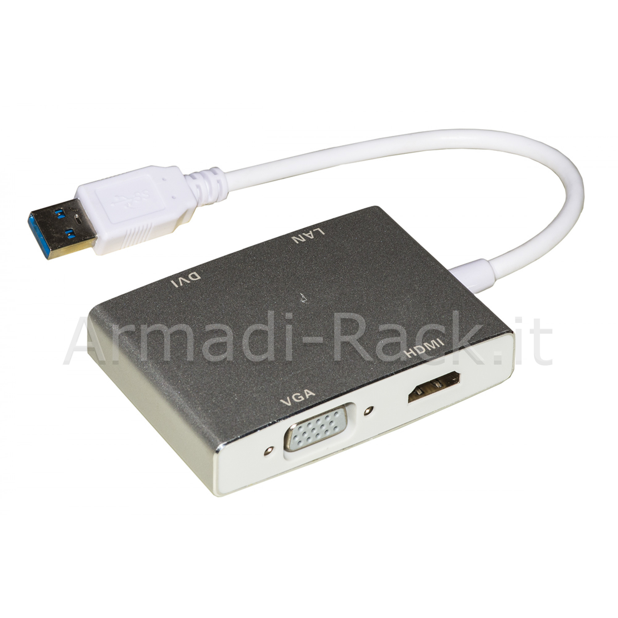 Con questo adattatore si può connettere, a una porta USB 3.0 tipo "A" di un PC o notebook, un video HDMI®, DVI, o VGA, e inoltre si può connettere il PC alla rete.