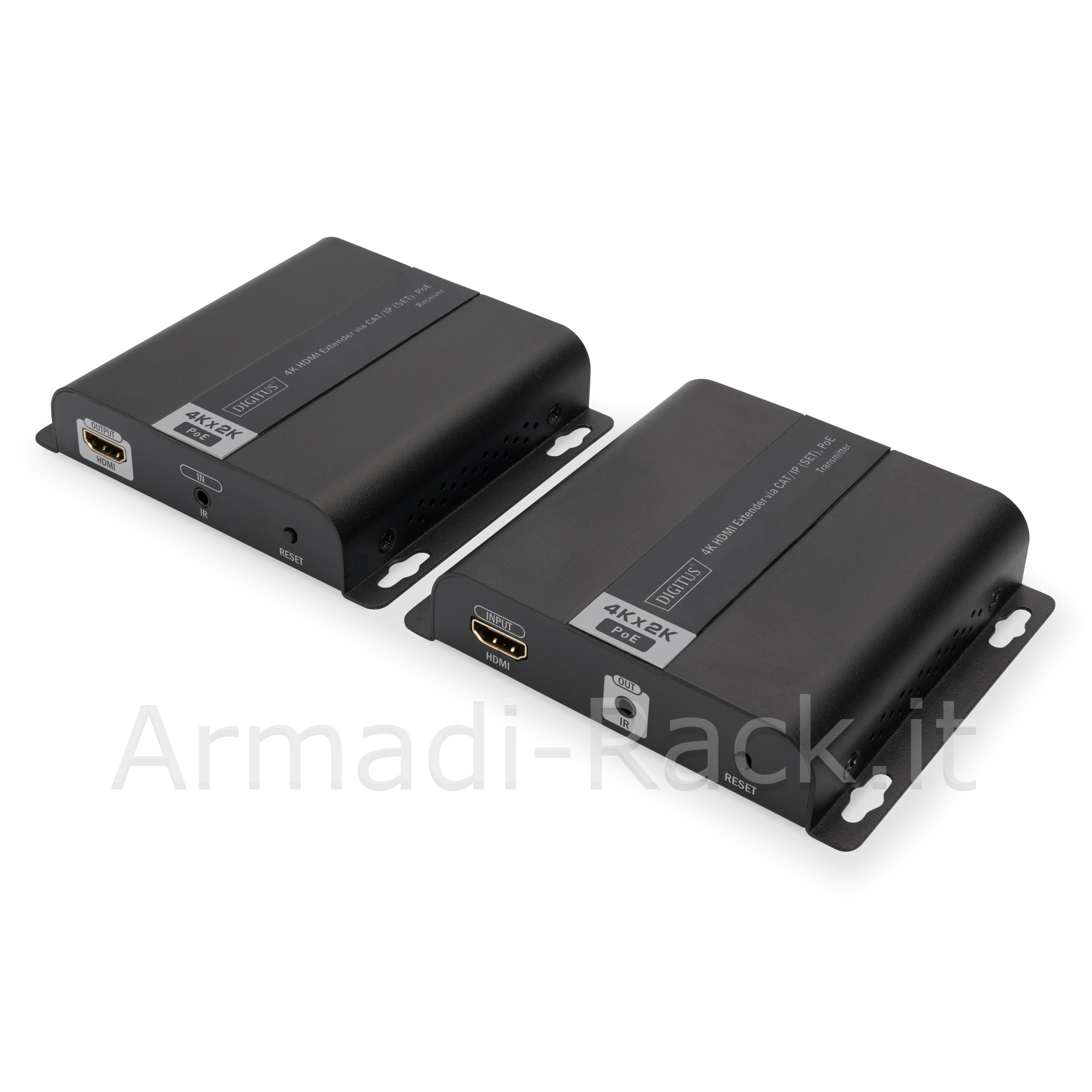 Estensione del segnale HDMI (distanza illimitata) tramite l'infrastruttura di rete locale esistente o mediante switch PoE aggiuntivi (connessione IP)