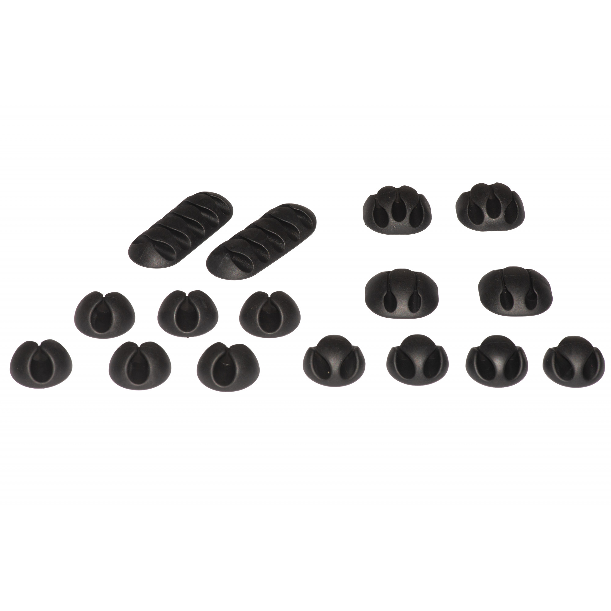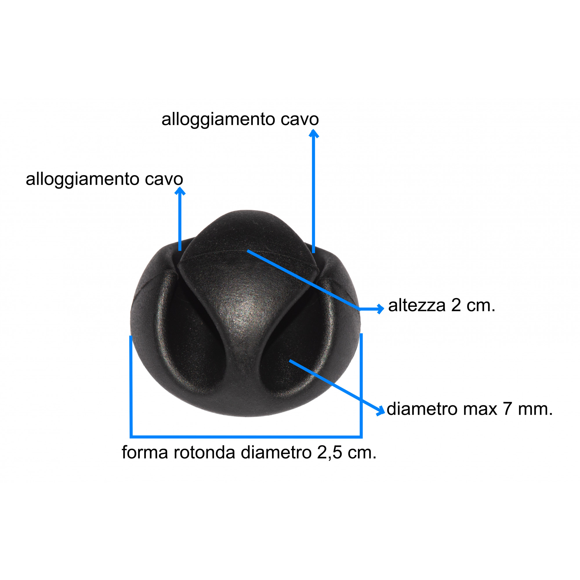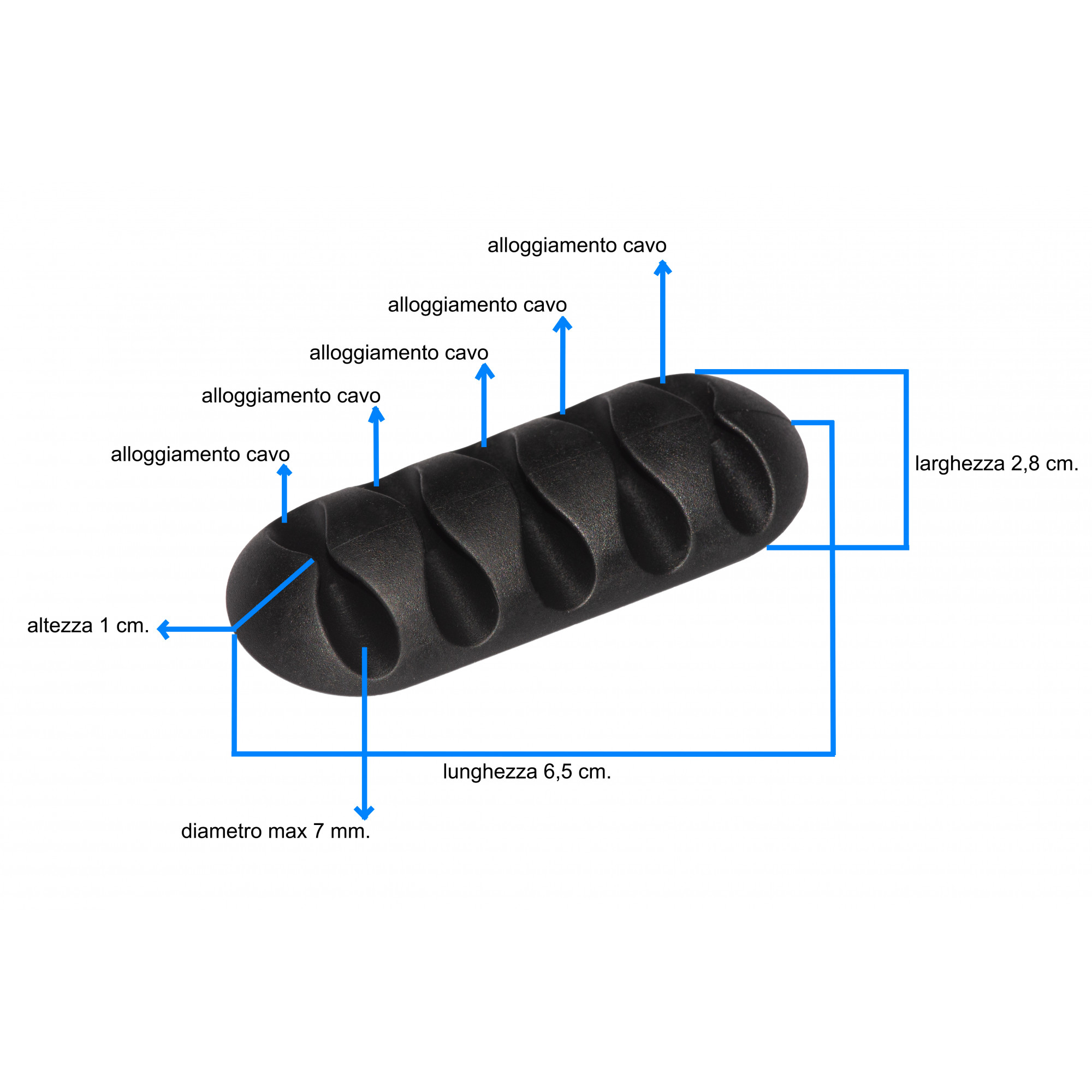 Supporti adesivi per gestire i cavi, per esempio i cavi di ricarica per lo smartphone, i cavi video della TV, o i cavi della stampanteSono piccoli e si possono installare in modo discreto in comodini, sotto i tavoli, sui mobiliRende più semplice prendere il cavo, e rendono più ordinato l'ambienteIn materiale TPR flessibileKit da 16 pezzi:6 supporto singolo cavo diametro cm 2.5 altezza 2 cm4 supporti per 2 cavi diametro cm 2.5 altezza 2 cm2 supporti per 2 cavi cm 3.5x3.5 altezza 1 cm2 supporti per 3 cavi cm 3.5x3.5 altezza 1 cm2 supporti per 5 cavi cm 6.5x2.8, altezza 1 cmOgni supporto permette di alloggiare cavi fino a 7 mm di diametro.