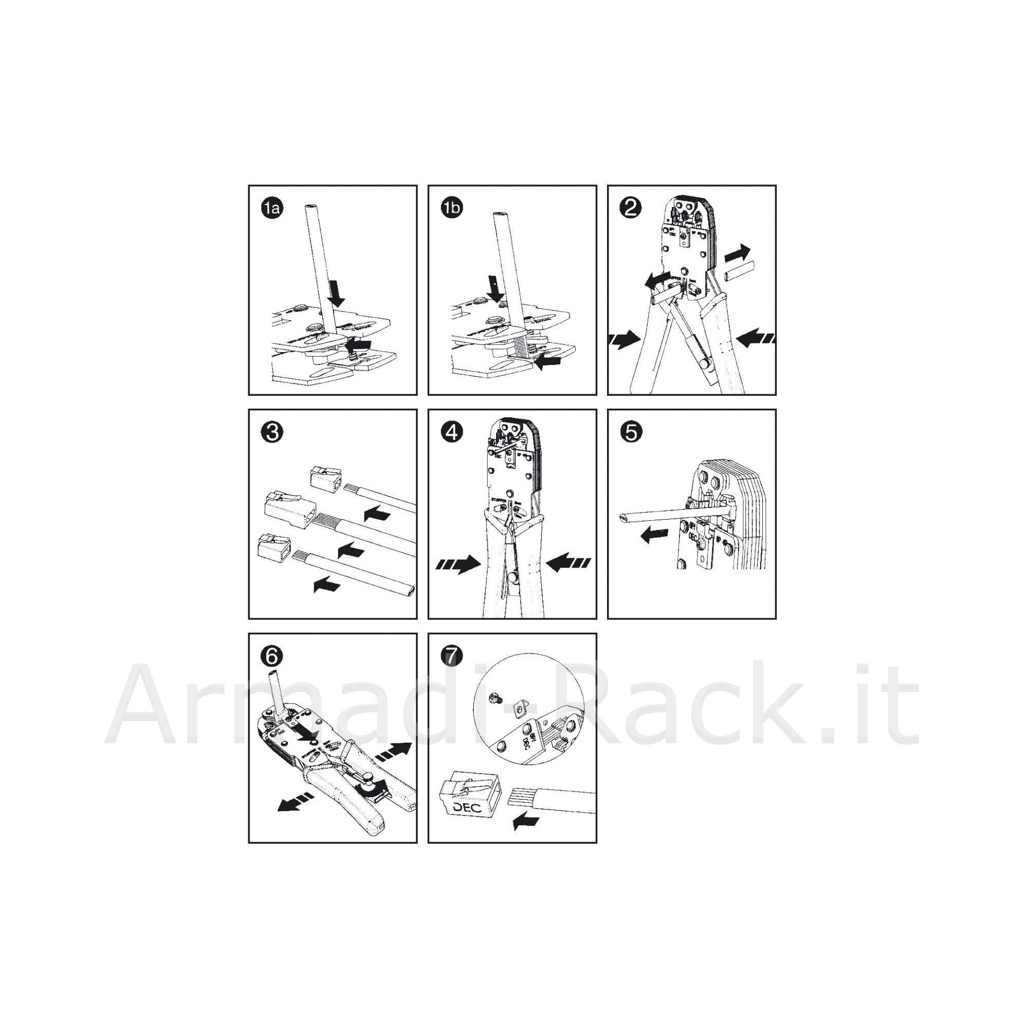Campo di applicazione: Per la crimpatura delle prese modulari e coassiali e per spelare e tagliare i cavi