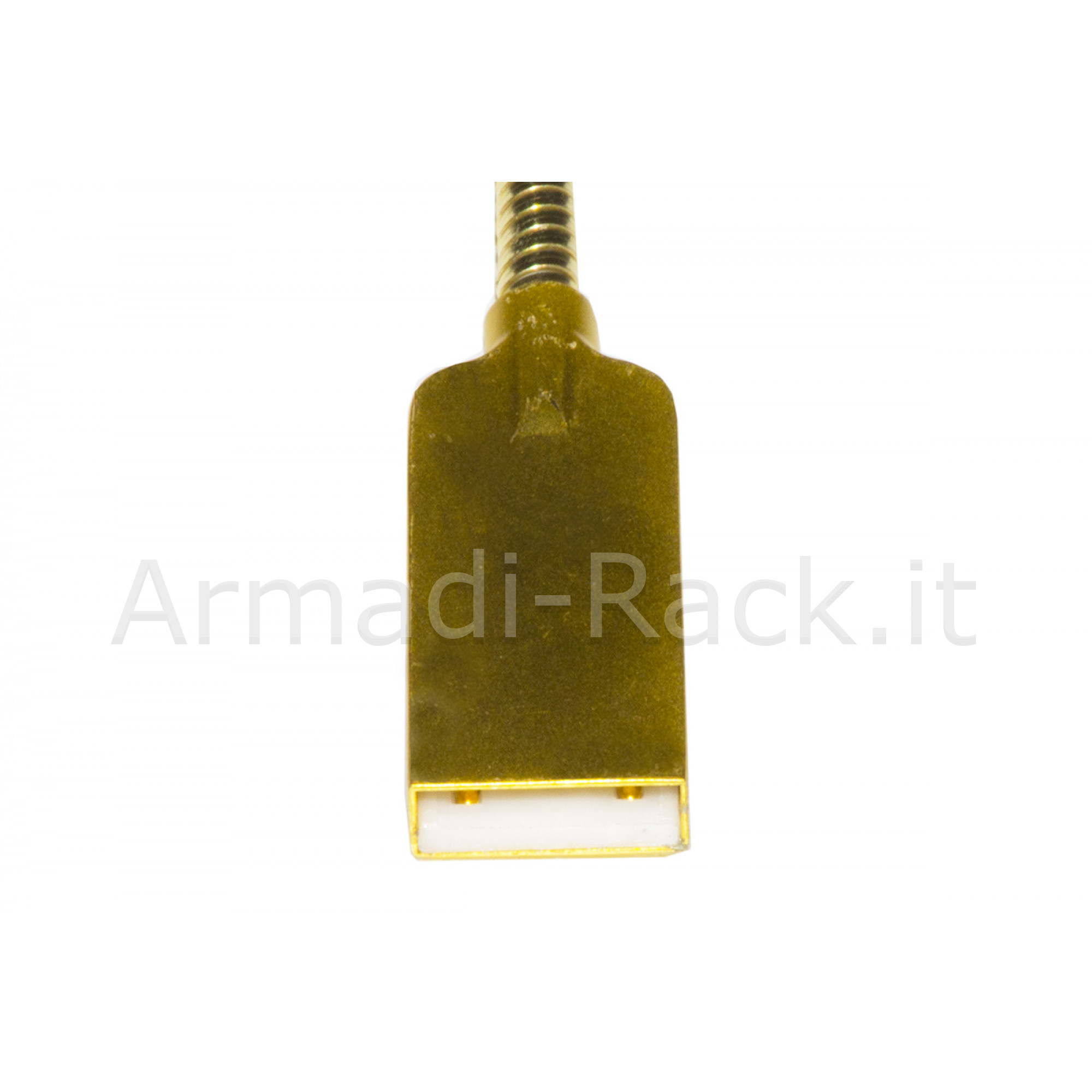 Connettori con custodia metallica con protezione antirottura nel punto di attacco, colore oro.