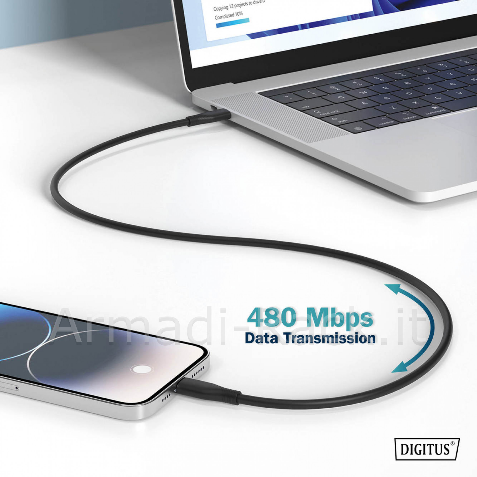 Collegamento affidabile e semplice dei dispositivi USB-C con il PC grazie al cavo in silicone morbido e flessibile.Velocità di trasferimento dati di 480 Mbit/s per la sincronizzazione e il trasferimento dei dati e una specifica di alimentazione di 60 W per la ricarica.Dettagli tecnici    Supporta velocità di trasferimento dati di 480 Mbit/s    Retrocompatibile con USB 2.0 e USB 1.1    Supporta la funzione di alimentazione USB con 20 V, 3 A e 60 W    Cavo resistente con una durata di vita fino a 25.000 curve (in base a test interni)    La spina di tipo C può essere utilizzata su entrambi i lati    AWG: 24    Cappucci: stampato    Connettore 1: Spina USB C    Connettore 2: Spina USB C    Materiale fili: CU    Superficie di contatto: placcata in nichel    Schermatura: schermatura semplice