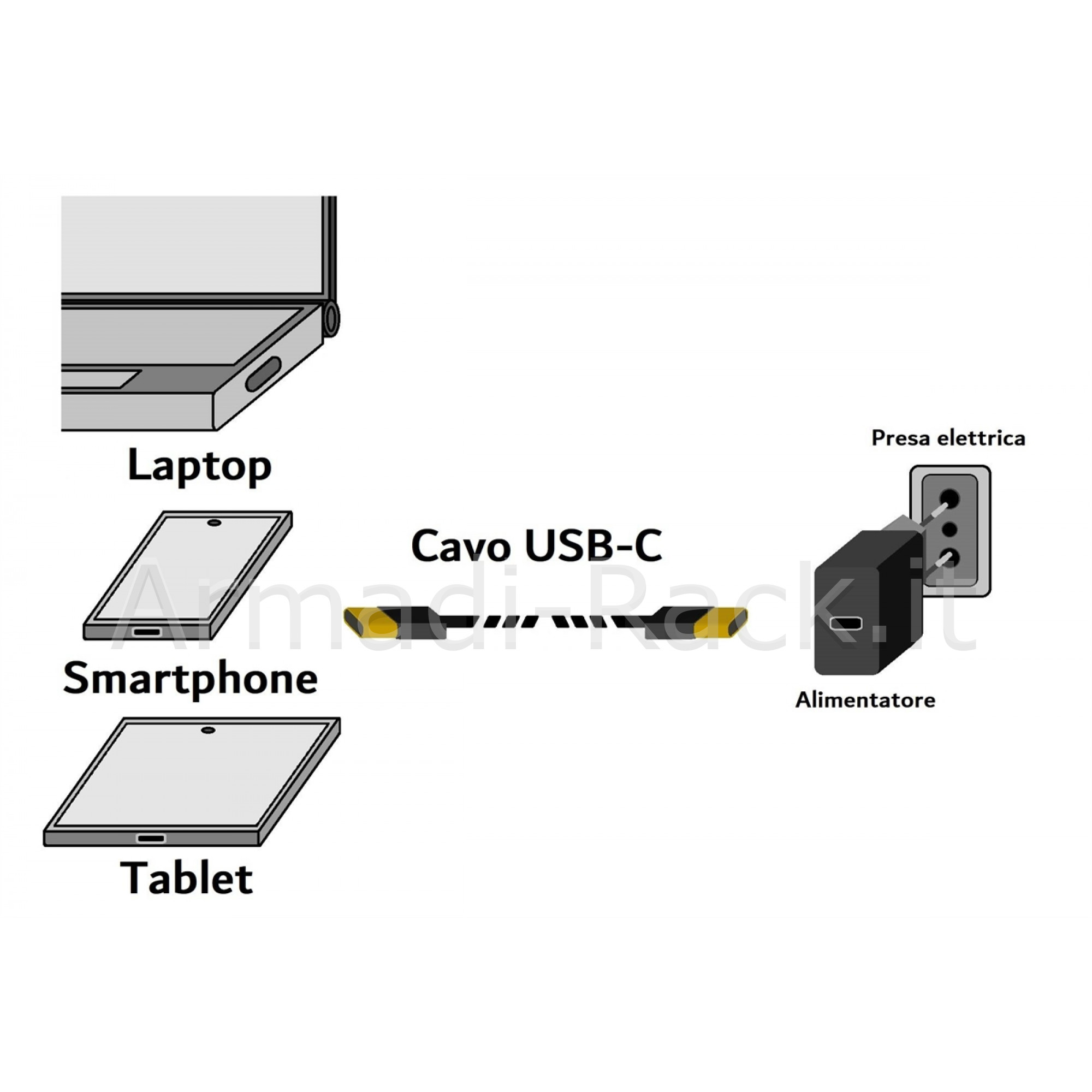 Cavo per dati o alimentazione con connettori USB-C per smartphone, tablet, notebook, video e altri dispositivi con connettori USB-CStandard USB4, permette scambio dati audio video alla velocità di 8Kx4K@60Hz.Quindi la massima velocità che permette di scaricare dati velocemente o di vedere contenuti multimediali collegando il vostro dispositivo a una TV o a un video.Inoltre permette il passaggio di corrente fino a 48 Volt 240 Watt permettendo una ricarica velocissima secondo lo standard PD3.1Standard USB4, trasmissione dati fino a 40 GbpsRetrocompatibile con gli standard precedenti USB e Thunderbolt 3Guaina: TPEConduttori in rame, con schermaturaConnettori USB-C con contatti doratiCon chip E-Mark HUSB332DStandard USB4 Super High Speed USB4