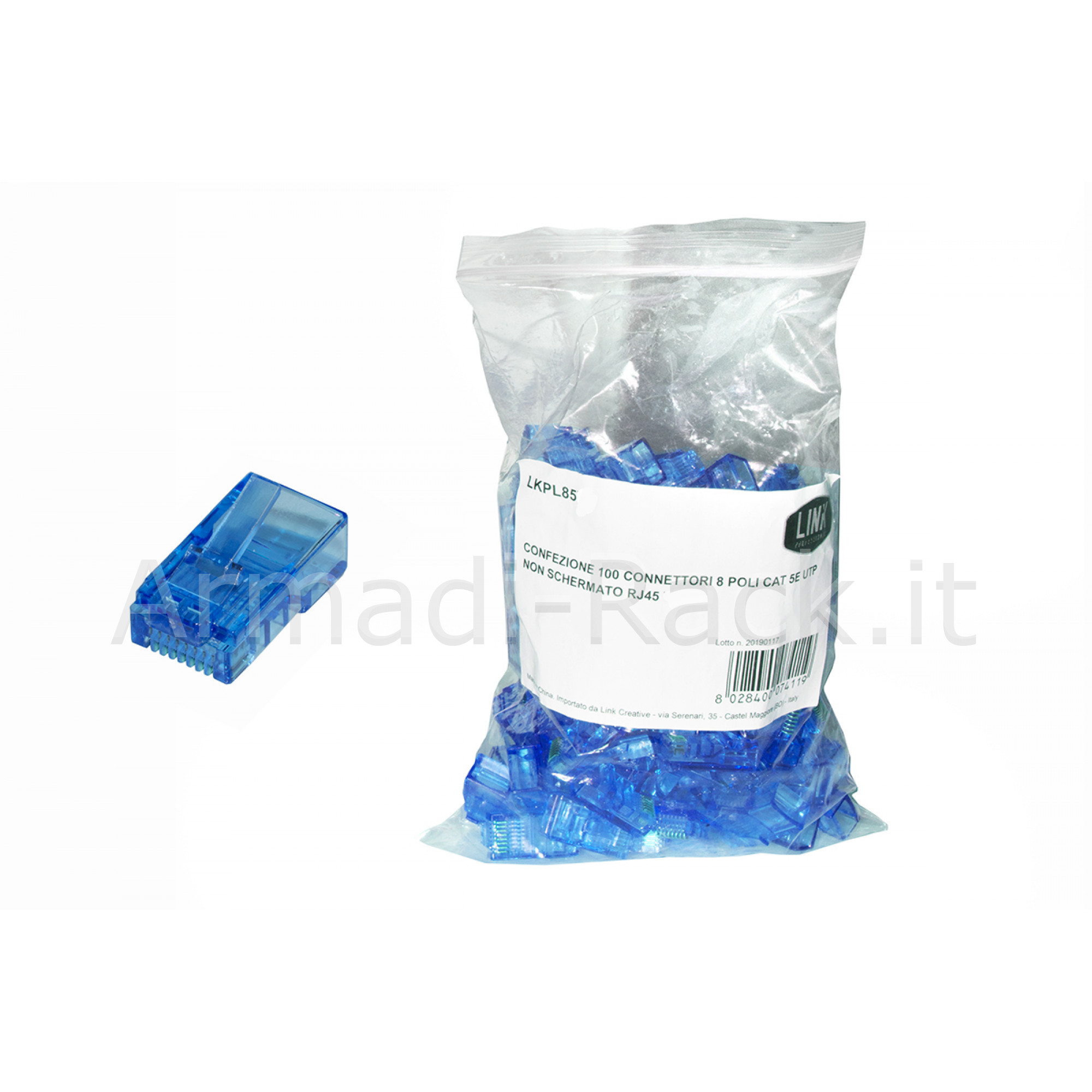 Confezione 100 connettori 8 poli cat 5e utp non schermato rj45 blu