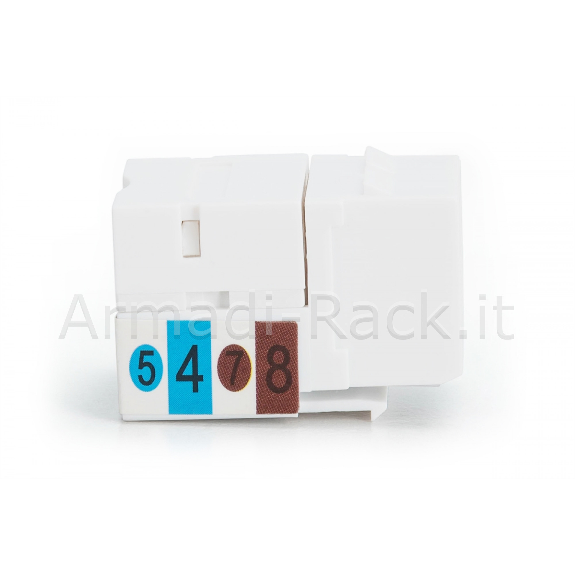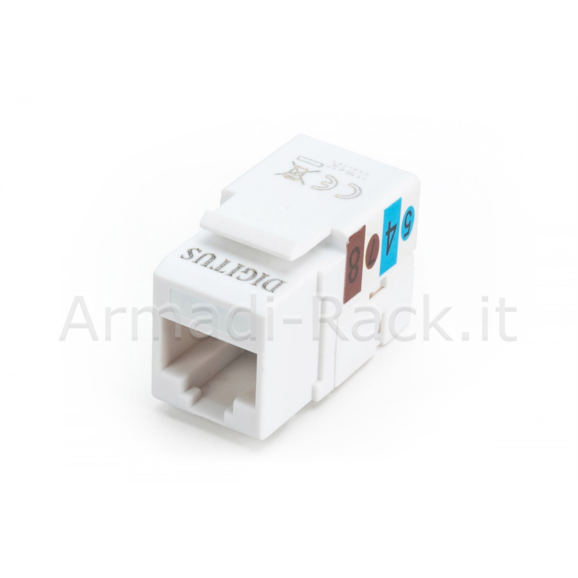 Il ''DN-93601W'' di DIGITUS® è un modulo Keystone CAT 6 che fornisce prestazioni eccellenti e qualità della connessione di rete.È testato in base alla classe di prestazioni di collegamento E fino a 250 Mhz, 3P Channel Link e Permanent Link, EN 50173 e ISO/IEC 11801.L'installazione del cavo avviene attraverso moduli LSA, il cui colore è codificato ai sensi di EIA/TIA 568 A&B.Dettagli tecnici Proprietà di trasferimento: Categoria 6 Campi di applicazione: Fino a 250 MHz, 1GBase-T Norme: ISO/IEC 11801 2nd Ed, EN 50173-1, EIA/TIA 568-C Caratteristiche generali: Adatto per installazione in armadi da 483 mm (19'') Prese RJ45, 8P8C Installazione del cavo attraverso moduli LSA, codice del colore secondo EIA/TIA 568 A & B Fissaggio del cavo attraverso fascette Caratteristiche tecniche: Materiale presa RJ45: ABS UL 94V-0 Contatto presa RJ45: Bronzo fosforoso verniciato, contatto dorato 0,5 µ Isolante connettore: Krone LSA+, UL 94V-2, bronzo fosforoso galvanizzato Circuito stampato: FR4, UL 94V-0 Proprietà fisiche: Forza di inserimento: 30N max (IEC 60603-7-5) Carico di trazione: 7,7 kg tra presa e spina Temperatura di esercizio: -20° C bis +70 °C (ISO/IEC 11801, EN 50173-1, ANSI/TIA/EIA 568 C) Ciclo presa: > 750 ai sensi di ISO/IEC 11801, IEC 60603-7-5 Terminale: > 200 ai sensi di ISO/IEC 11801, IEC 60603-7-5 Supporto di base: 22-26 AWG conduttore intrecciato e massivo Resistenza all'isolamento: > 500 MOhm Resistenza del contatto: < 20 MilliOhm Rigidità dielettrica: 1000 VDC (contatto/contatto), 1500 VDC (contatto/massa) Categoria: CAT 6