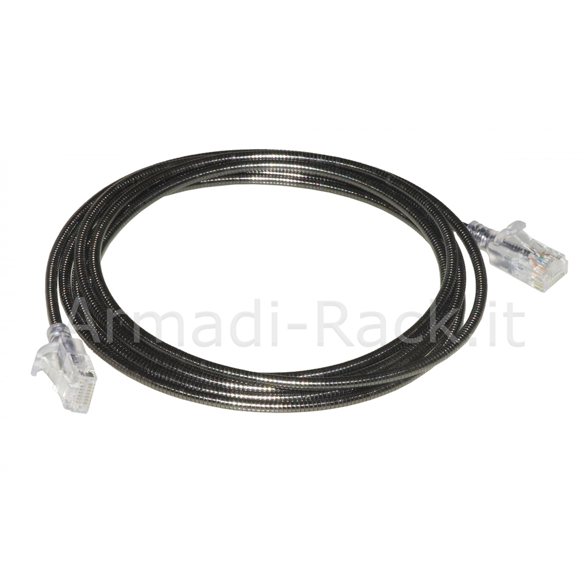 Cavi di rete CAT 6A U-UTP non schermati, in rame, con guaina in metallo. La guaina in metallo rende questo cavo estremamente resistente e adatto anche in ambienti soggetti a sollecitazioni, oltre ad aver un bel design che si adatta anche ad ambienti eleganti.