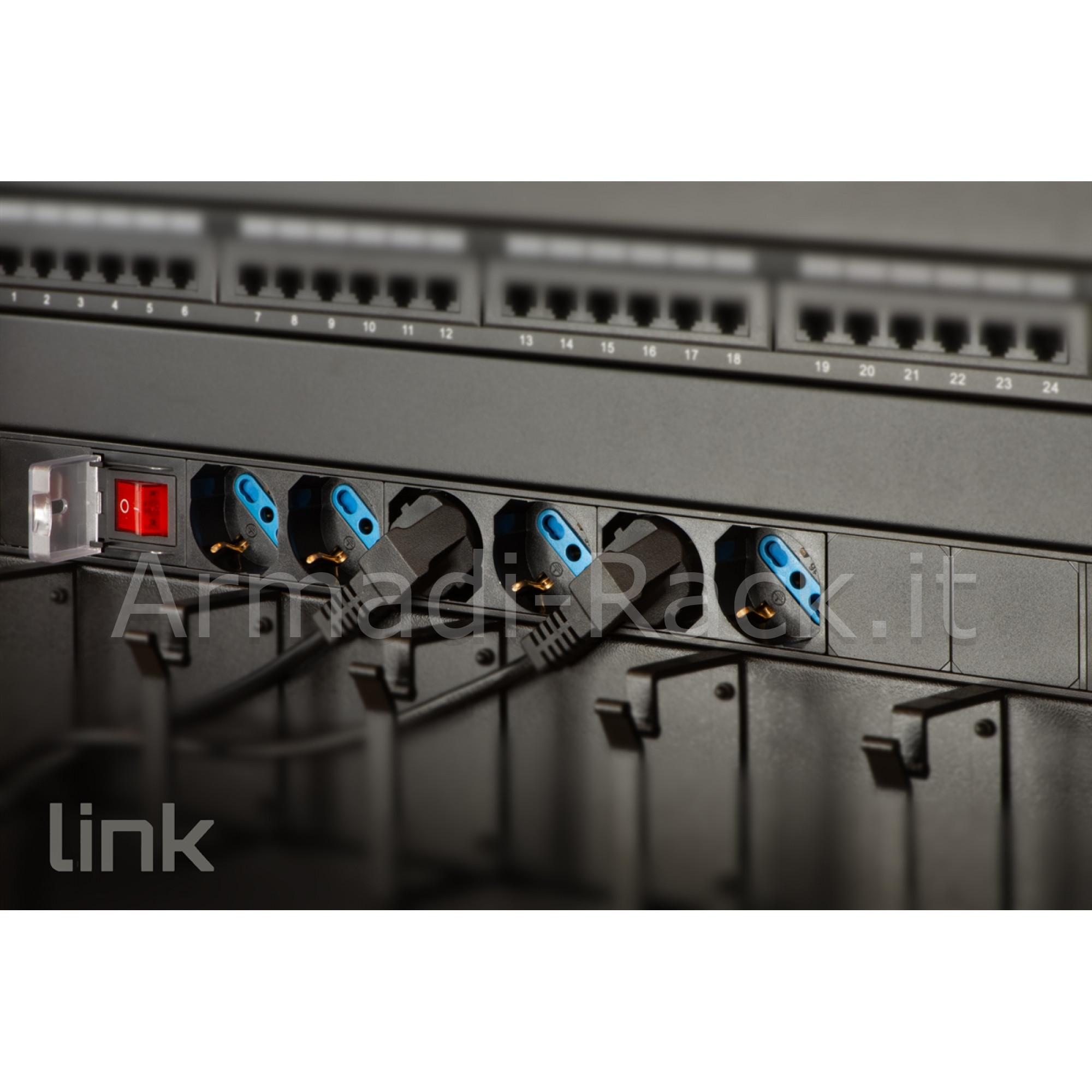 PRESA MULTIPLA PER ARMADI RACK 19'' CON INTERRUTTORE LUMINOSO.