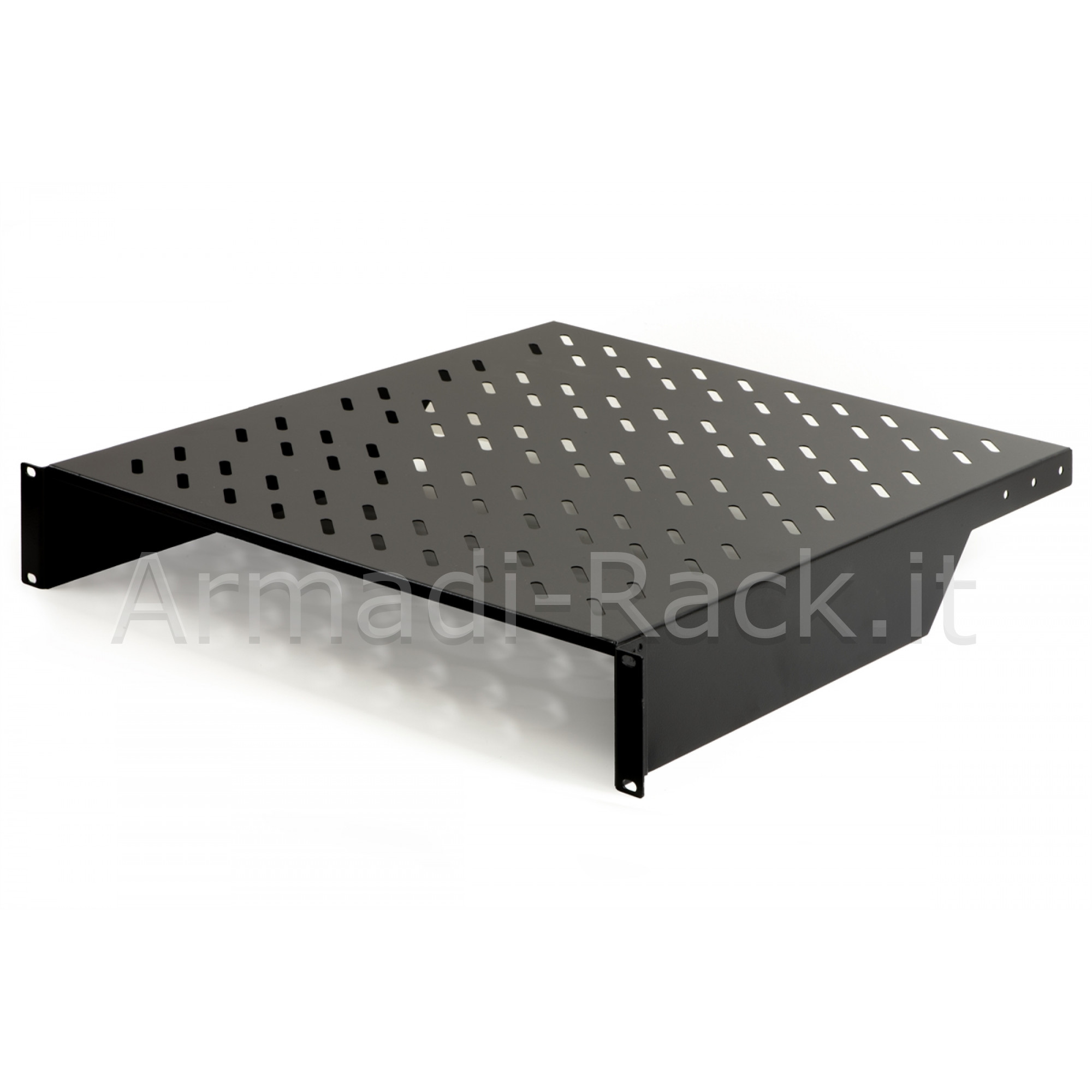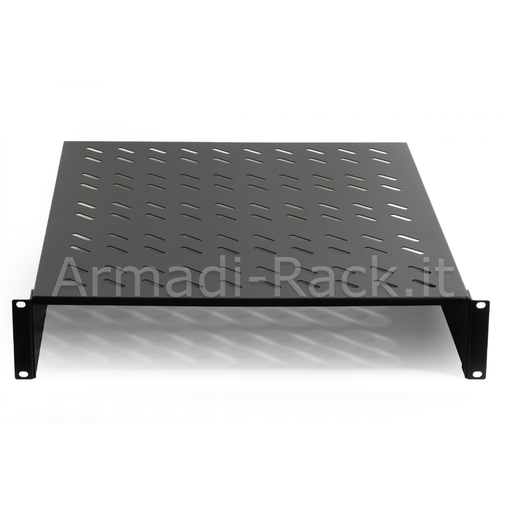 In acciaio, con attacchi frontali, universale per tutti gli armadi 19" dove la profondità lo consente.