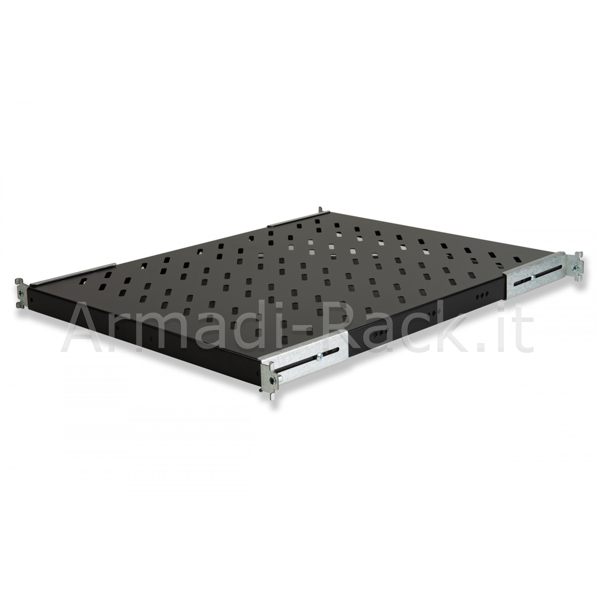Gli agganci ai montanti sono allungabili, quindi si possono adattare a tutti gli armadi rack con 4 montanti, la cui distanza tra loro sia compresa tra 57 e 64 cm.